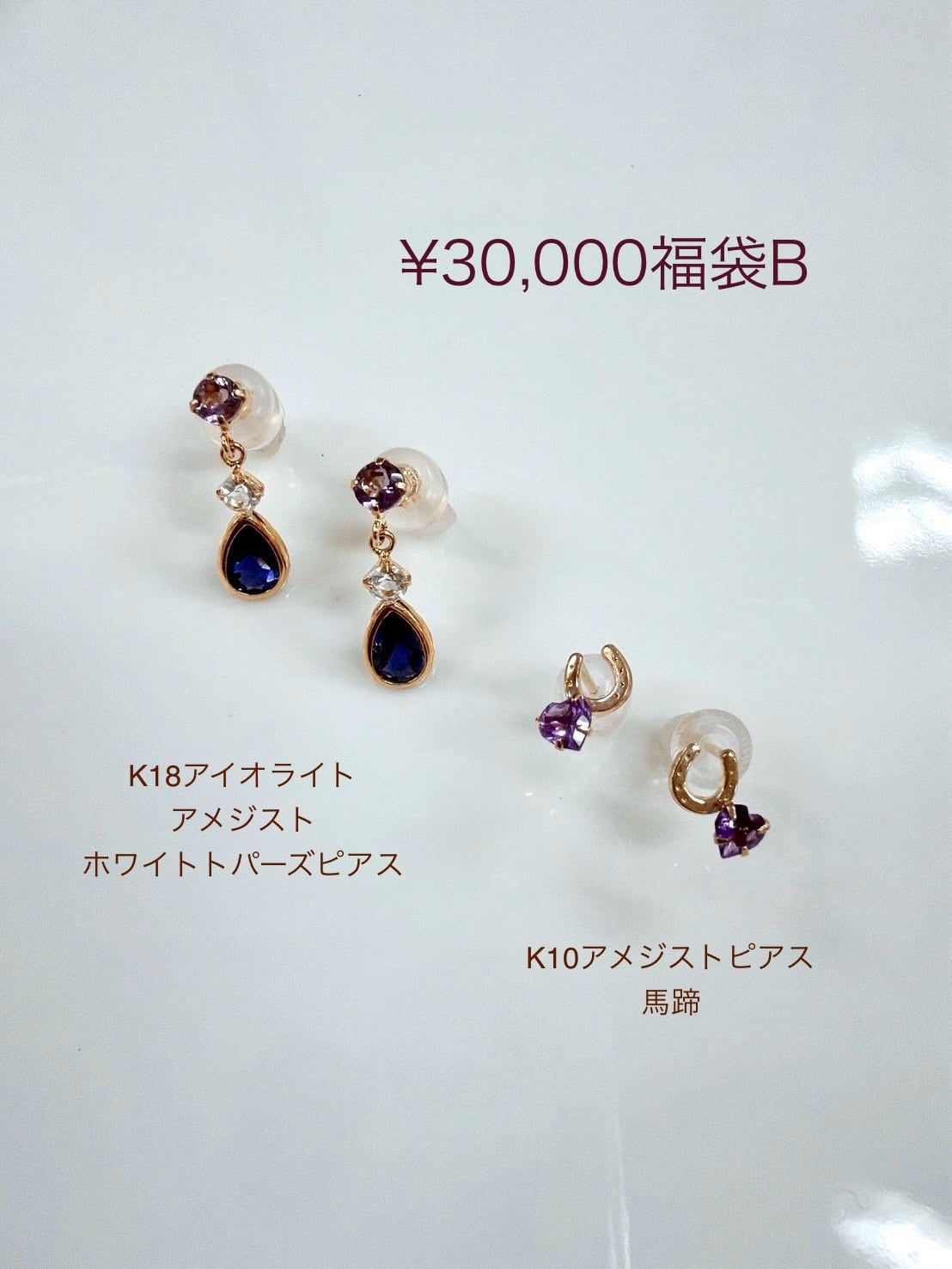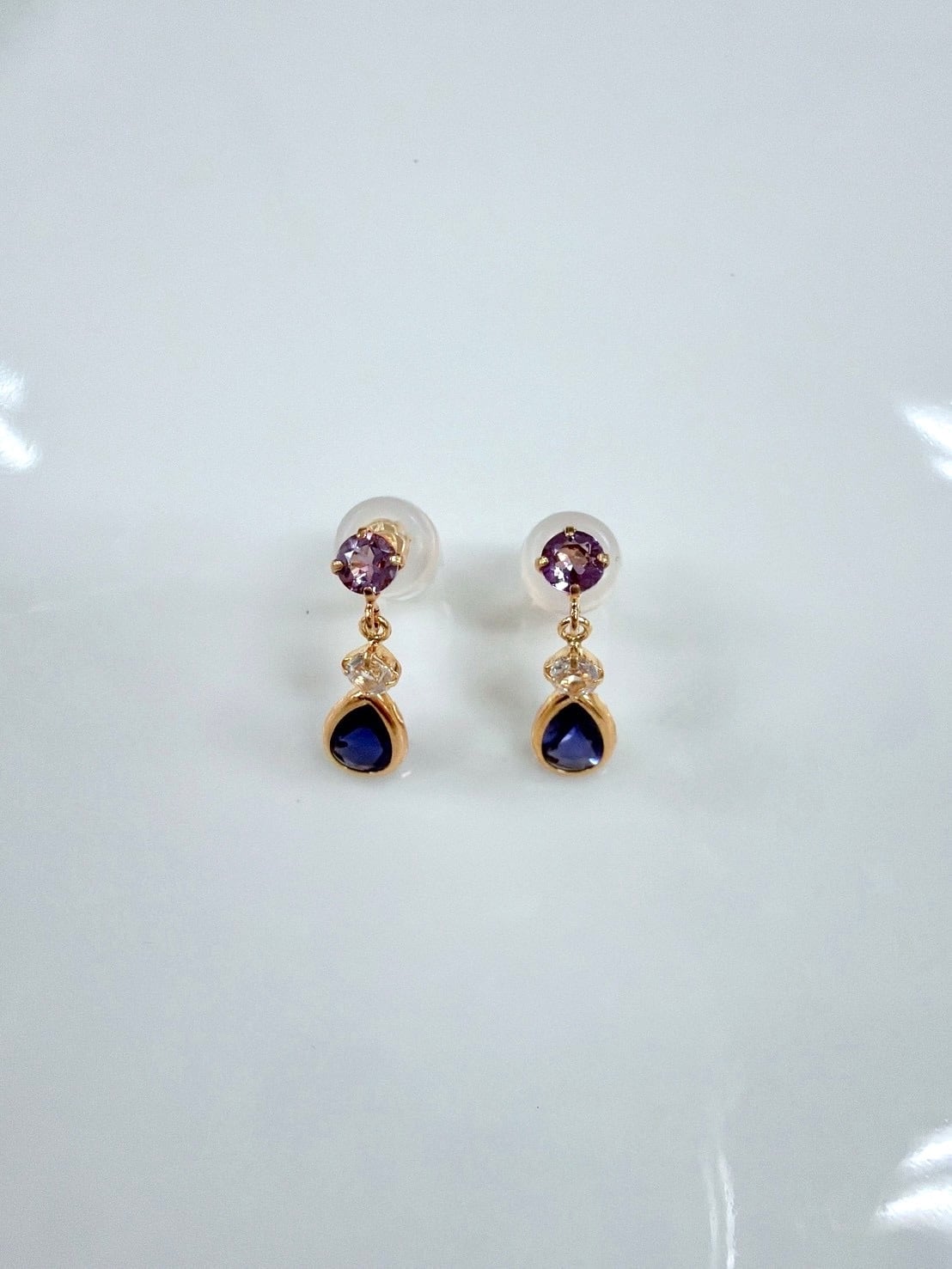 *K18アイオライト・アメジスト・ホワイトトパーズピアス